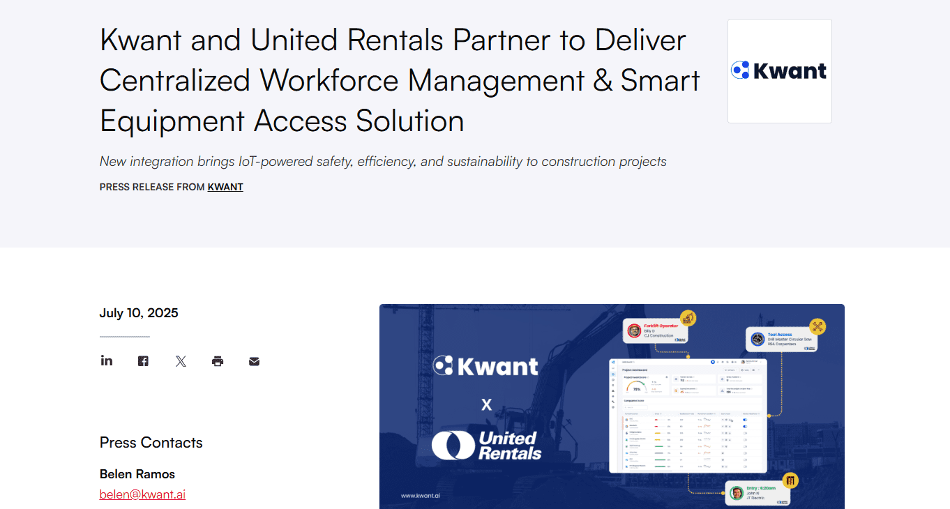 Stay informed on how Kwant is redefining the construction industry. From strategic global partnerships to enterprise-scale breakthroughs, explore the latest news shaping the future of jobsite safety and productivity.